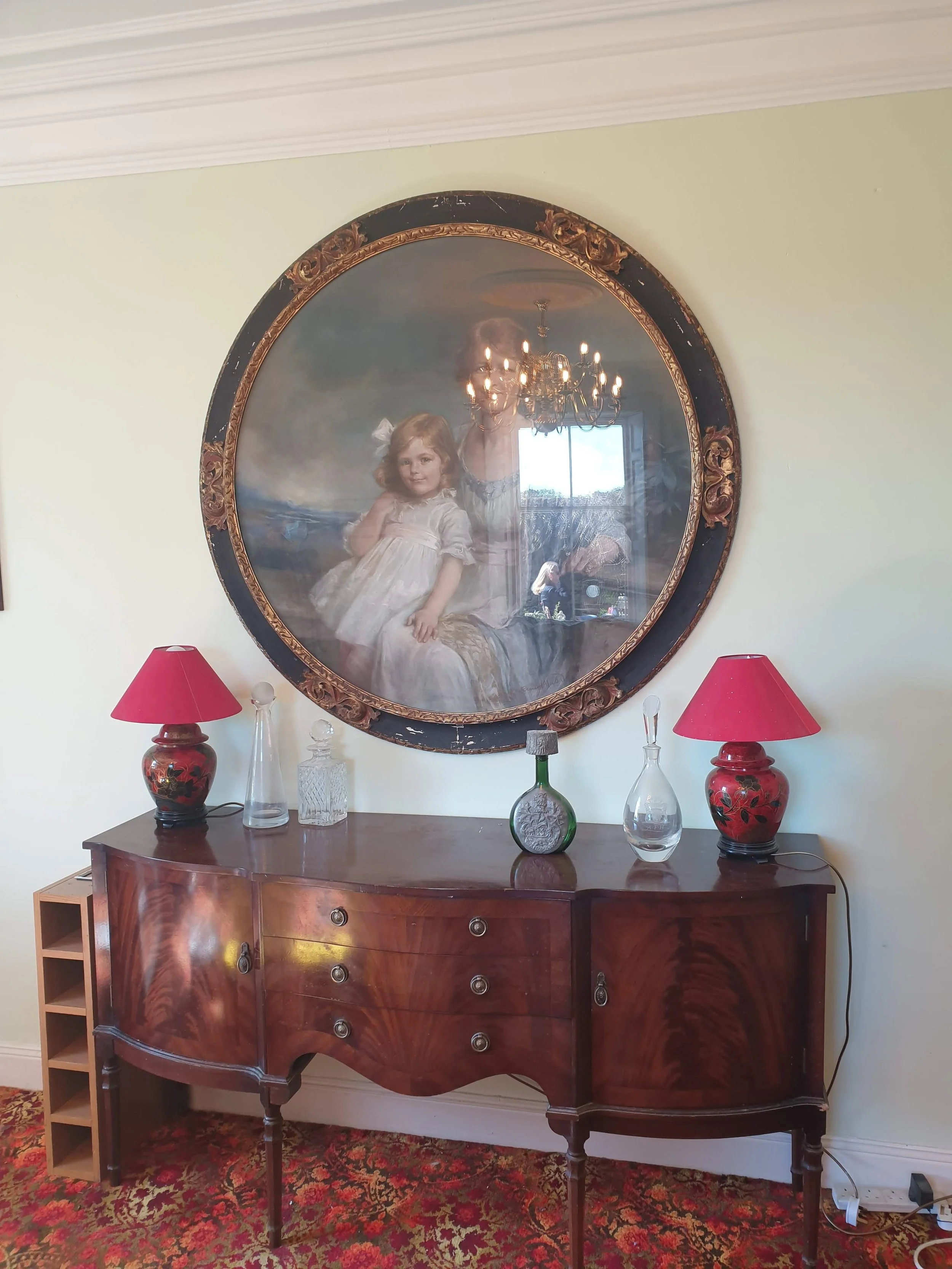 Further task; to create suitable hanging system within client’s home to enable safe hanging of the painting & frame which all in all weighed 35kg.
